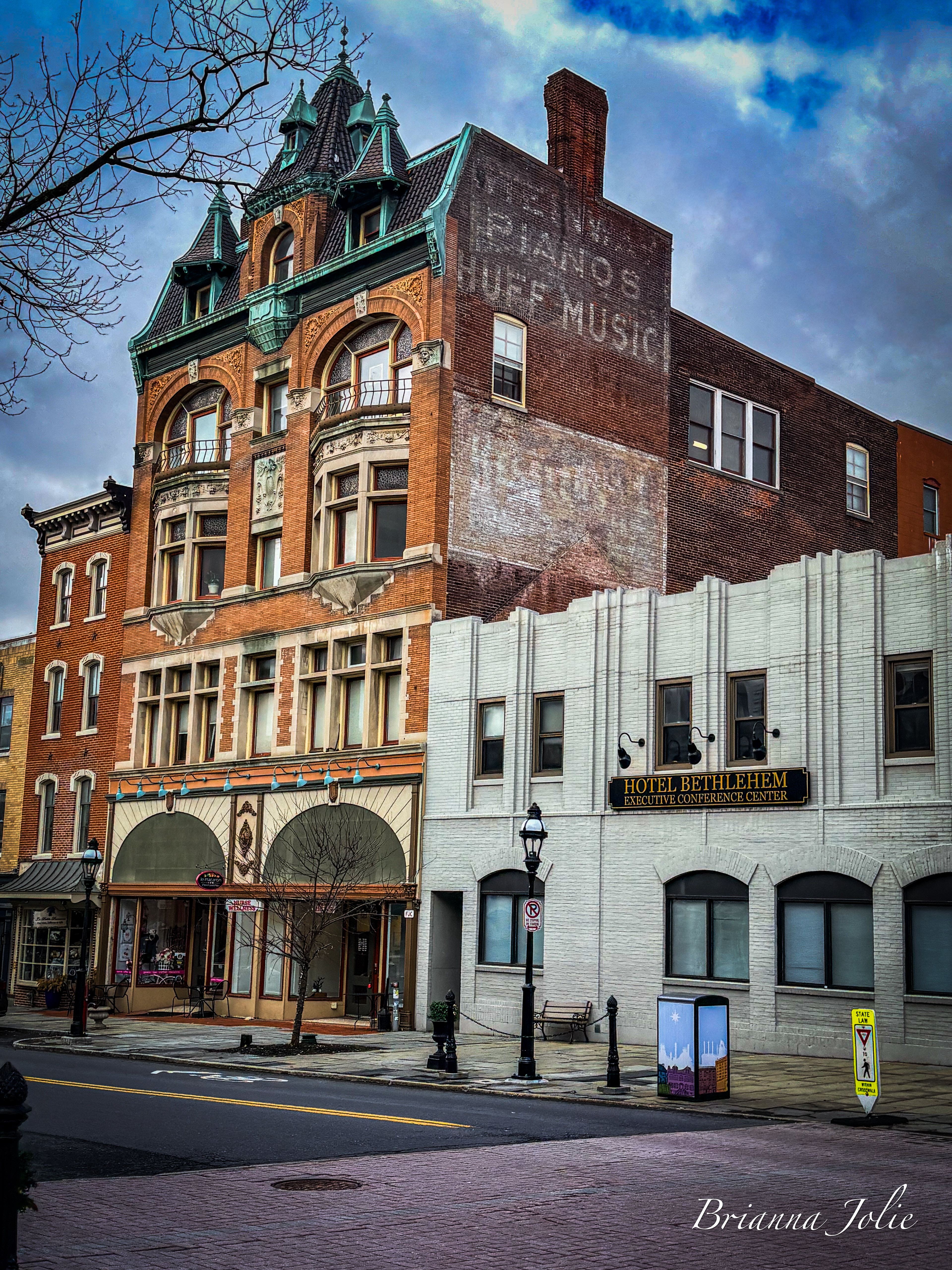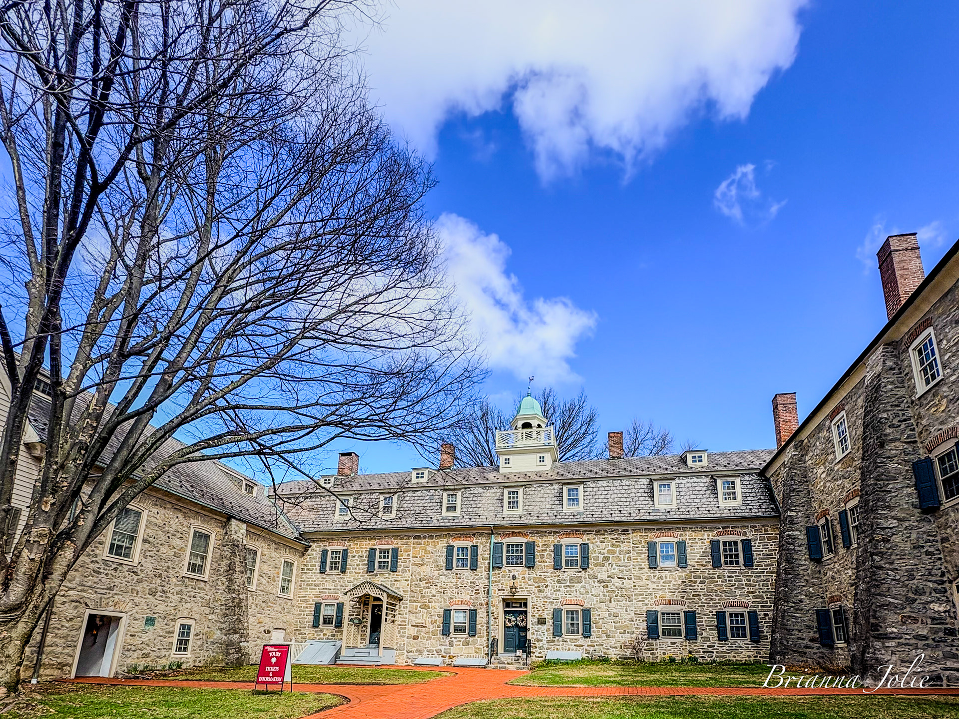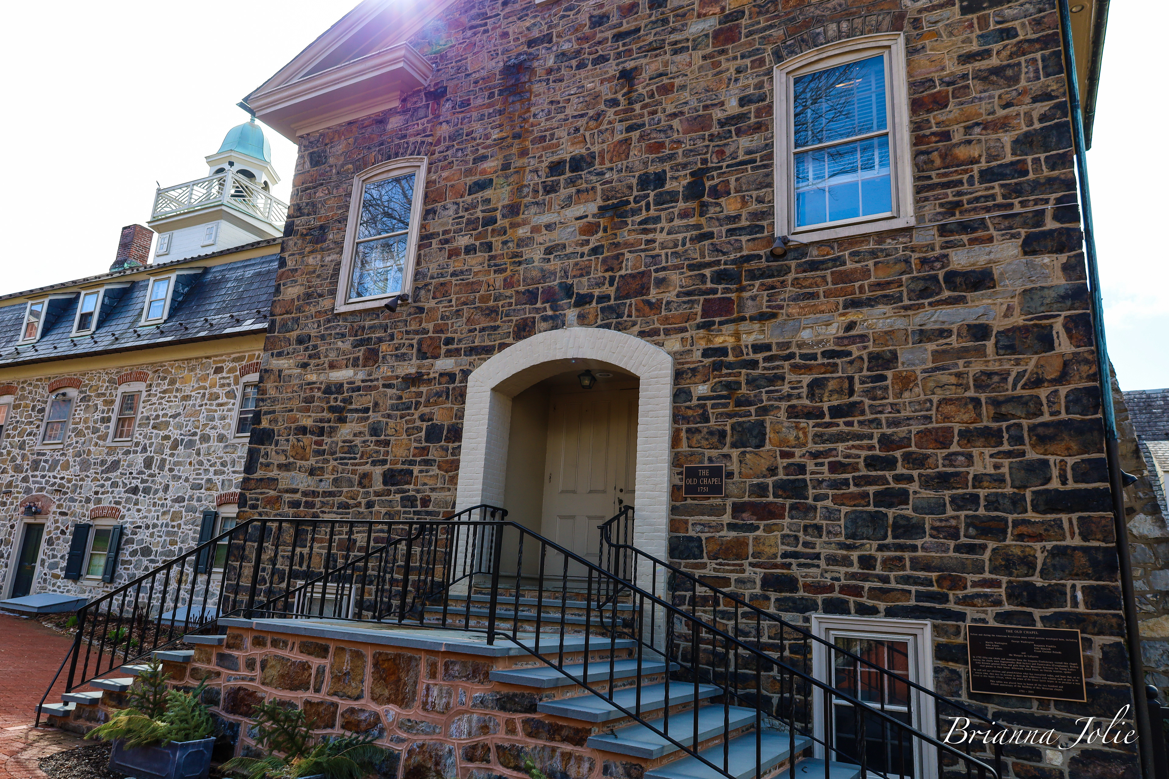 Prior to European settlements, the areas around present-day Bethlehem and its surrounding locales along the Delaware River and its tributaries in eastern Pennsylvania were inhabited by various indigenous peoples, including the Algonquian-speaking Lenape, which had three main divisions, known by the dialects, the Unami, Unalachtigo, and Munsee. They traded with the Dutch and then British colonialists in the Mid-Atlantic region in present-day Connecticut, Delaware, Long Island, Maryland, New Jersey, the lower Hudson Valley in New York, and other regions in Pennsylvania. On April 2, 1741, William Allen, a wealthy Philadelphia merchant and political figure, who later founded the city of Allentown, deeded 500 acres (200 ha) along the banks of the Monocacy Creek and Lehigh River to the Moravian Church.[10] On Christmas Eve of that year, David Nitschmann and Nicolaus Zinzendorf, leading a small group of Moravians, founded the mission community of Bethlehem at the confluence of the Monocacy and Lehigh rivers. This group included John Martin Mack, who later became bishop of the Moravians in the Virgin Islands.[11] They established missionary communities among the Native Americans and unchurched German-speaking Christians and named the settlement after the Biblical town Bethlehem of Judea, said to be the birthplace of Jesus. "Count Zinzendorf said, 'Brothers, how more fittingly could we call our new home than to name it in honor of the spot where the event we now commemorate took place. We will call this place Bethlehem.' And so was Bethlehem named after the birthplace of the Man of Peace." Bethlehem was started as a typical Moravian Settlement Congregation, where the Church owned all the property. In the late 1700s, Bethlehem established grist and saw mills, known as Calvin's Mills.[12] The historic Brethren's House, Sisters' House, Widows' House, and Congregation House, with the Old Chapel, are remnants of this period of communal living.[13] Moravians ministered to the regional Lenape Native Americans through their mission in the area, and to others further east in the New York colony. In historic Bethlehem's God's Acre cemetery, converted Lenape were buried alongside Moravians. In 1762, Bethlehem built the first waterworks in America to pump water for public use. In the autumn of 1777, during the American Revolutionary War, many patriots fled from Philadelphia to Bethlehem and the surrounding area as the British Army advanced from the east. The Marquis de Lafayette recovered from an injury received at the Battle of Brandywine in Bethlehem, and several of the most prominent members of the Continental Congress fled north to Bethlehem before the congress eventually reconvened in Lancaster. Before, during, and after the American Revolution, Bethlehem was visited by George Washington and his wife Martha, John Adams, Samuel Adams, Benjamin Franklin, Alexander Hamilton, John Hancock, and the Marquis de Lafayette. On September 22, 1777, records show, 14 of the 56 delegates to the Second Continental Congress signed the Moravian Sun Inn register in Bethlehem and stayed there overnight.[14][15] George Washington stored his personal effects at the James Burnside farm at 1461 Schoenersville Road in Bethlehem. As of 1998, the farm is operated as a historical museum known as James Burnside Plantation.[16]